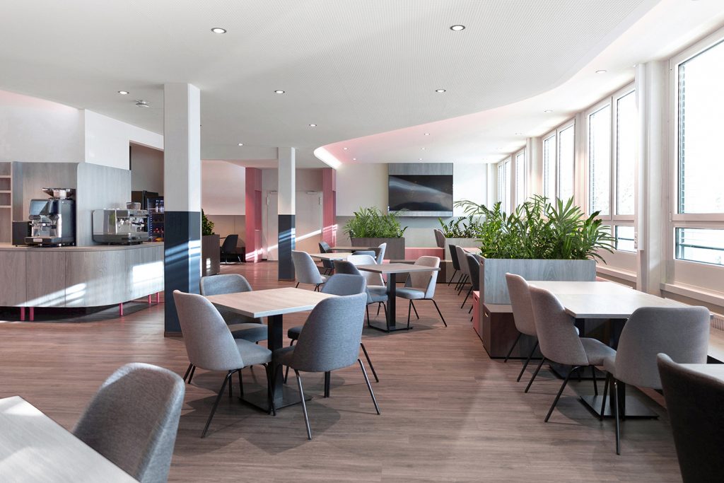 Multifunktional gestaltet ist die TOPTICA Kantine als zentraler Anlaufpunkt im Dauereinsatz. Mit Küche und Raum für den Austausch lädt sie ein zu Pausen und Gesprächen. Workshops, Firmenevents, Feste und Feiern – für alles findet sich der passende Bereich.